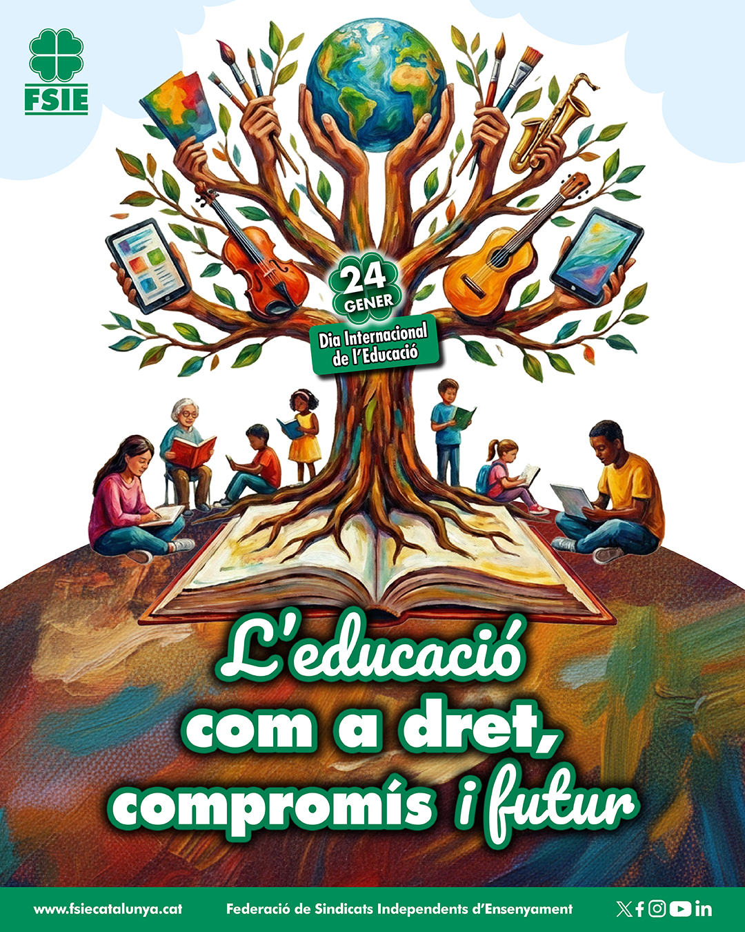Cada 24 de gener se celebra el Dia Internacional de l’Educació, una data per reconèixer que l’educació és un dret fonamental, un motor de progrés social i la base d’una societat més justa, inclusiva i democràtica. Des de l’FSIE volem posar en valor la tasca imprescindible dels professionals de l’educació i l’atenció educativa, especialment en els sectors que representem i defensem: l’ensenyament concertat, privat, l’educació infantil i l’atenció a persones amb discapacitat, així com el personal d’administració i serveis, la tasca dels quals és clau per al...