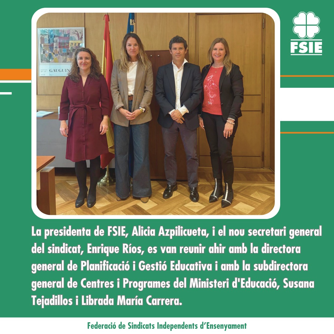 FSIE TRASLLADA LES SEVES REIVINDICACIONS AL MINISTERI D'EDUCACIÓ
